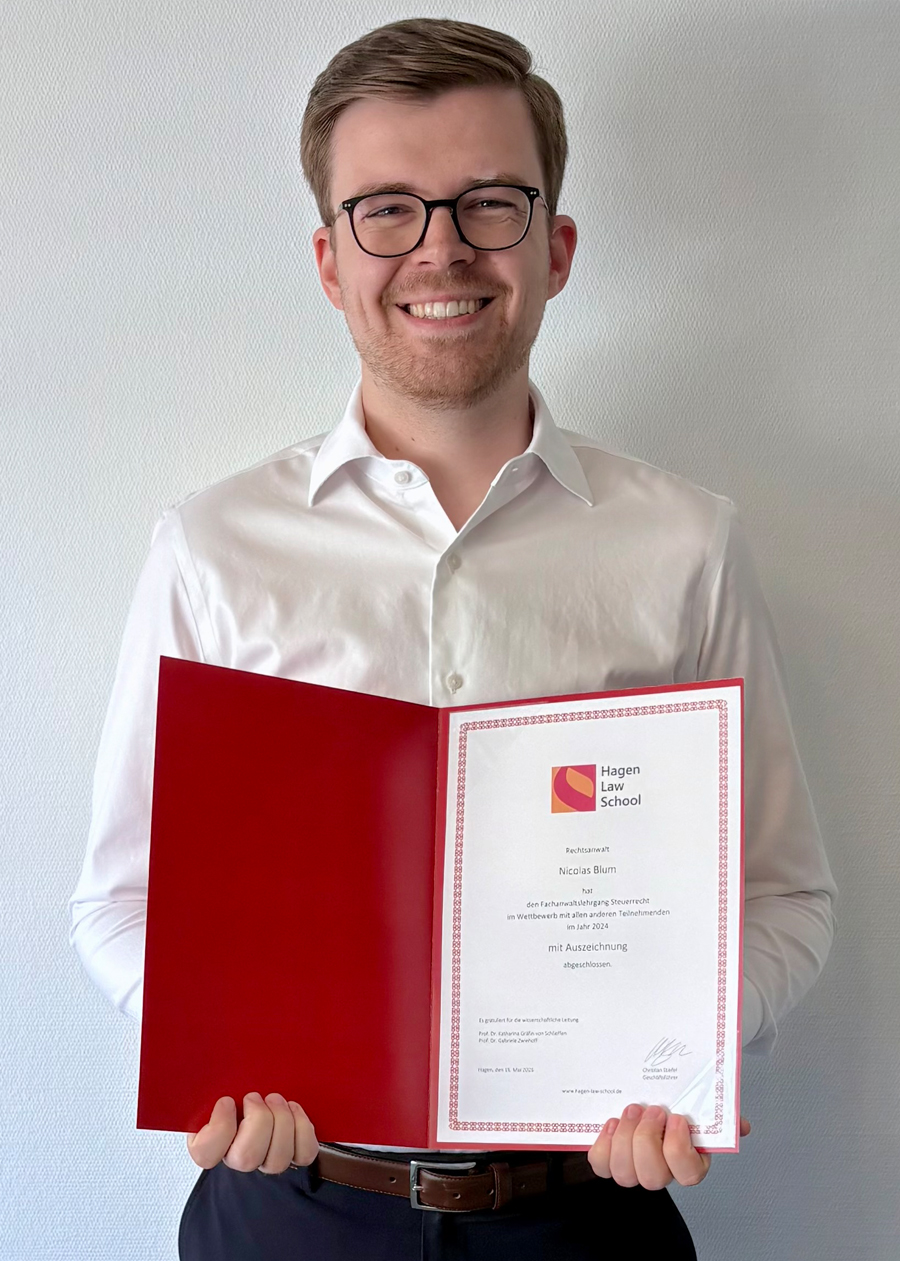Rechtsanwalt Sebastian Kutzner hat mit einem Ergebnis von durchschnittlich 91 Punkten seinen Fachanwaltslehrgang im Steuerrecht als Zweitbester des gesamten Jahrgangs 2023 bei der Hagen Law School abgeschlossen. Die notwendigen Fälle hat er fast zusammen, weil er seit rund sieben Jahren im Steuerrecht arbeitet. Für die Zukunft plant er außerdem, die Prüfung zum Steuerberater abzulegen.